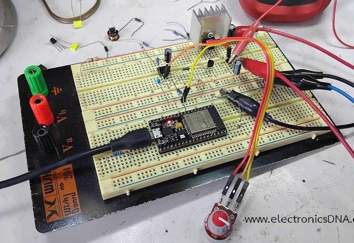 โครงงานนี้เป็นการพัฒนาต่อเนื่องจากโครงงานที่ผ่านมา ด้วยการให้บอร์ดควบคุม NodeMCU ESP32 สร้างแรงดันเอาต์พุตจาก DAC และรับสัญญาณป้อนกลับ ADC