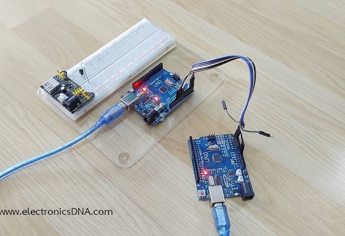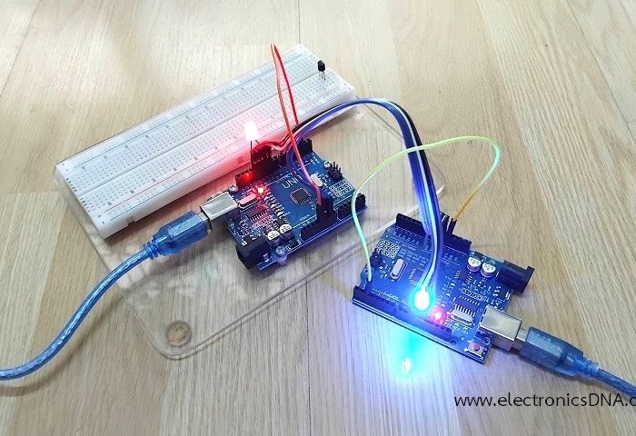 โครงงานนี้เป็นการทดลองสื่อสารกันระหว่างบอร์ด Arduino กับ Arduino ด้วยการสื่อสารแบบ I2C (Inter-Integrated Circuit) สำหรับเป็นการศึกษารูปแบบคำสั่งโปรแกรม Arduino IDE และการต่อวงจรระหว่างบอร์ดควบคุมเข้าด้วยกัน