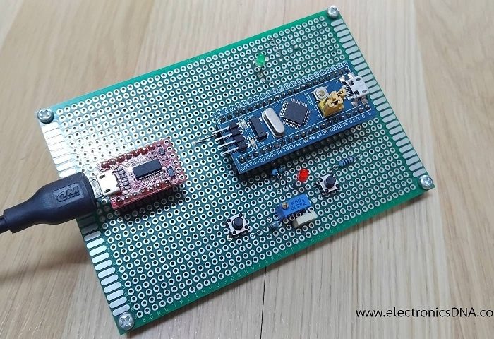 ในตอนที่ 2 ของการทดลองบอร์ดควบคุม STM32F103C8T6 คือการส่งข้อมูลไปยังหน้าต่าง Serial Monitor, การส่งสัญญาณลอจิกไปยังขาเอาต์พุต, การรับสัญญาณลอจิกขาอินพุต และการอ่านค่าสัญญาณอะนาลอกขนาด 12 บิต