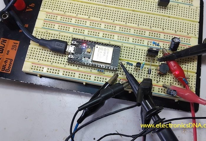 โครงงานนี้เป็นการทดลองใช้บอร์ดควบคุม NodeMCU ESP32 ควบคุมการทำงานของวงจรดีซี ทู ดีซี บักคอนเวอร์เตอร์ แบบไร้สายผ่านโมดูลบูลทูธ